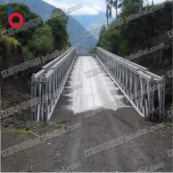 4.貝雷鋼橋斜面弦桿:用于使有加強弦桿的橋梁在推進過程中從滾輪上順利通過。分陰頭和陽頭兩種﹔安裝在析架下弦桿的起、止兩端,用銷子和斜面弦桿尾部的彎鉤與加強弦桿、析架連接。